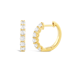 Yellow Gold Scalloped Claw Set Diamond Huggie Earrings