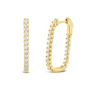 Yellow Gold Diamond Set Rectangular Hoop Earrings