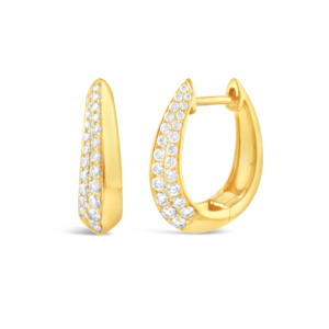 Yellow Gold Pavé Set Diamond Bulbous Teardrop Earrings