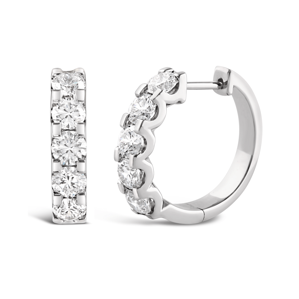 18ct white gold large huggie earrings featuring ten claw set round lab grown diamonds.