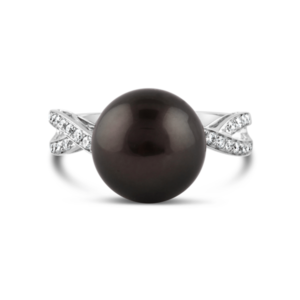 White Gold, Tahitian Pearl & Crossover Band Diamond Ring