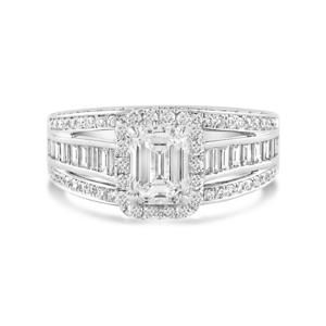 White Gold Baguette & Round Diamond Split Band Engagement Ring