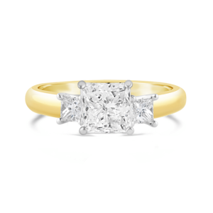 Yellow Gold Three Stone Princess Cut Diamond Engagement Ring