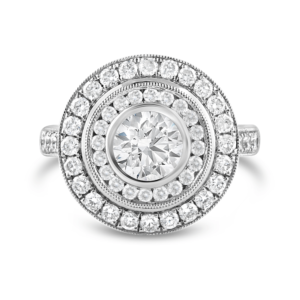 White Gold Bezel Set Double Halo Diamond Engagement Ring