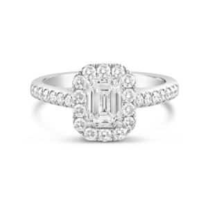 White Gold Emerald Halo Split Band Diamond Engagement Ring