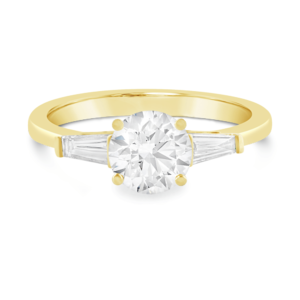 Yellow Gold Baguette Side Diamond Three Stone Engagement Ring